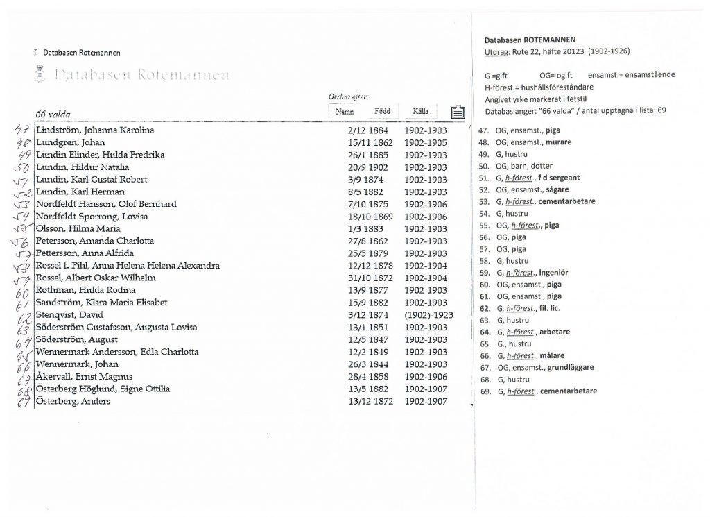 Databasen Rotemannen, Rote 22 (Vasaroten), Stockholms Stadsarkiv