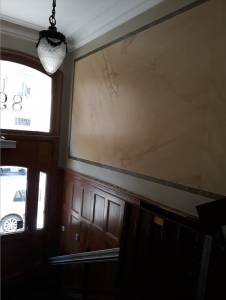 Vid en renovering av trapphuset år 2000 utfördes en tidsenlig marmoreringsmålning i dess entré (dekormålare Sven-Erik Johansson), samt en dekormålning i trappspindeln. Dess grå/gröna och beige/gula färger valdes för att harmoniera med trapphusets infallande ljus och interiör.