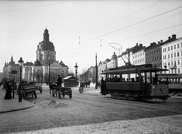 FOTOGRAFI: Odenplan. Vy mot Gustav Vasa kyrka. 1908-1908. FOTOGRAF: Malmström, A. BILDNUMMER: E 16286, Stadsmuseet i Stockholm