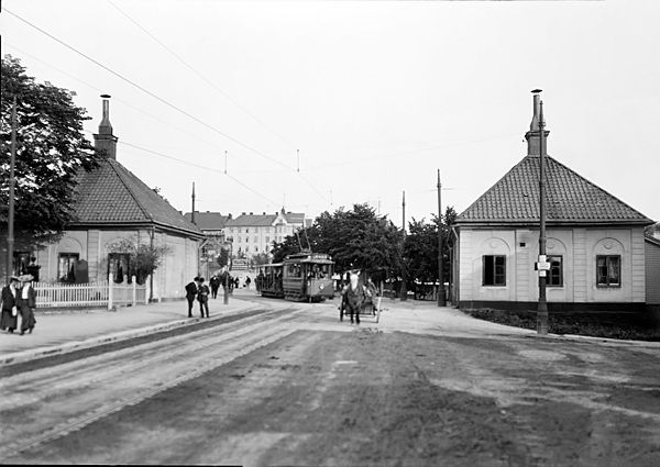 FOTOGRAFI: Norrtull med tullhusen. Spårvagn och hästkärra. 1895-1910. FOTOGRAF: Heimer, Oscar. BILDNUMMER: E 29825, Stadsmuseet i Stockholm