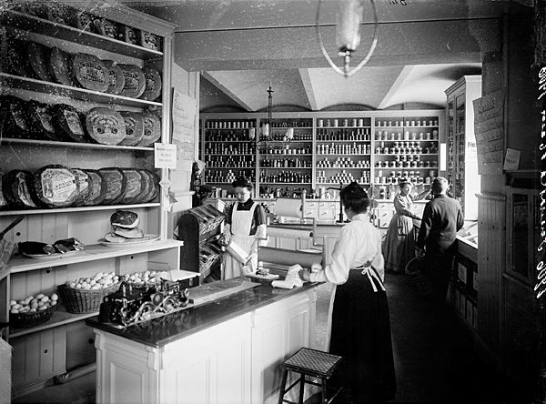 FOTOGRAFI: Interiör från konsumentföreningen Svenska hems matvarubutik på Karlbergsvägen 16. 1906-1906. FOTOGRAF: Okänd. BILDNUMMER: D 41, Stadsmuseet i Stockholm