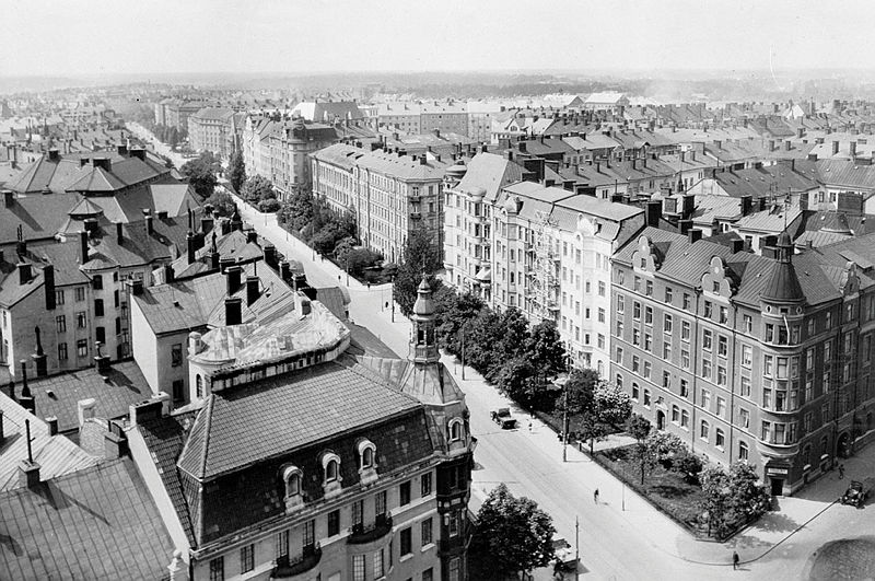 FOTOGRAFI: Vy västerut på Karlbergsvägen, från Gustaf Vasa kyrkas torn, 1945. FOTOGRAF: Hasselblad. BILDNUMMER: F 35446, Stadsmuseet i Stockholm