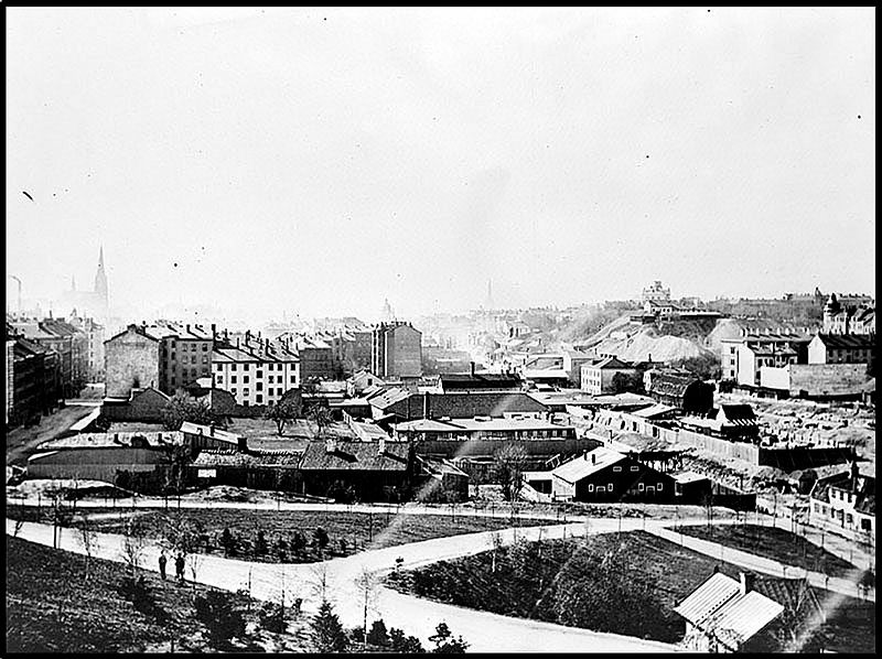 FOTOGRAFI: Området mellan Vanadislunden och Odengatan. T.v. Döbelnsgatan och t.h. Stora Bastugatan (nu Sveavägen). Gångvägen i förgrunden är blivande Frejgatan. T.h. i fonden Observatoriekullen. 1903-1904. FOTOGRAF: Olsson, K J. BILDNUMMER: Fa 50315, Stadsmuseet i Stockholm