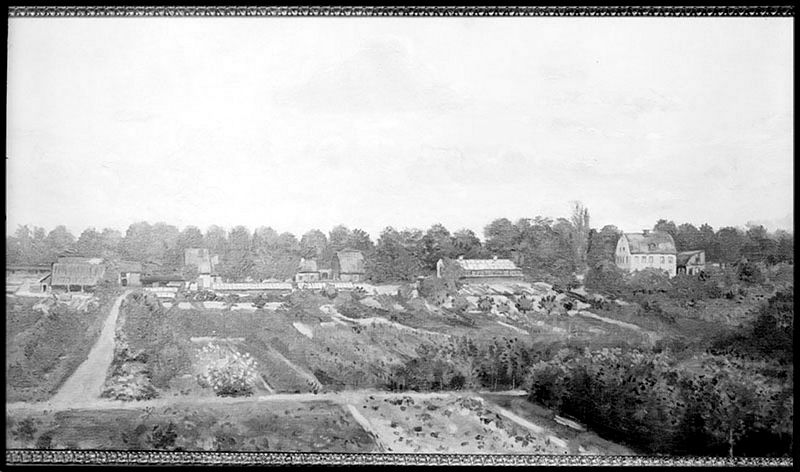 FOTOGRAFI: Fotografi av tavla föreställande Bergianska trädgården, forna Bergielund vid Carlbergs allé. 1900-1920. FOTOGRAF: Okänd. BILDNUMMER: C 2890, Stadsmuseet i Stockholm.